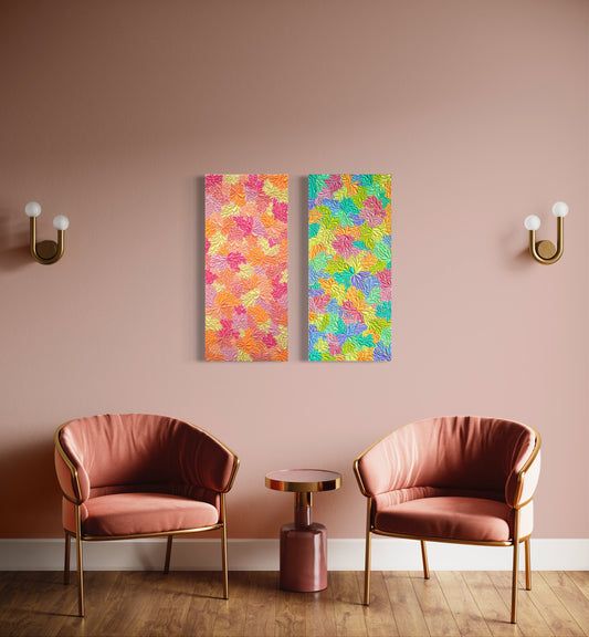 My artistic vision revolves around color, with all of my paintings inspired by nature. I believe color heals and encourages contentment with ourselves. I love seeing happy people around me, and I aim to boost your serotonin levels with my art and contribute to spreading that joy! My studio's mission is to create 'Happy Art', a colorful piece for every space.