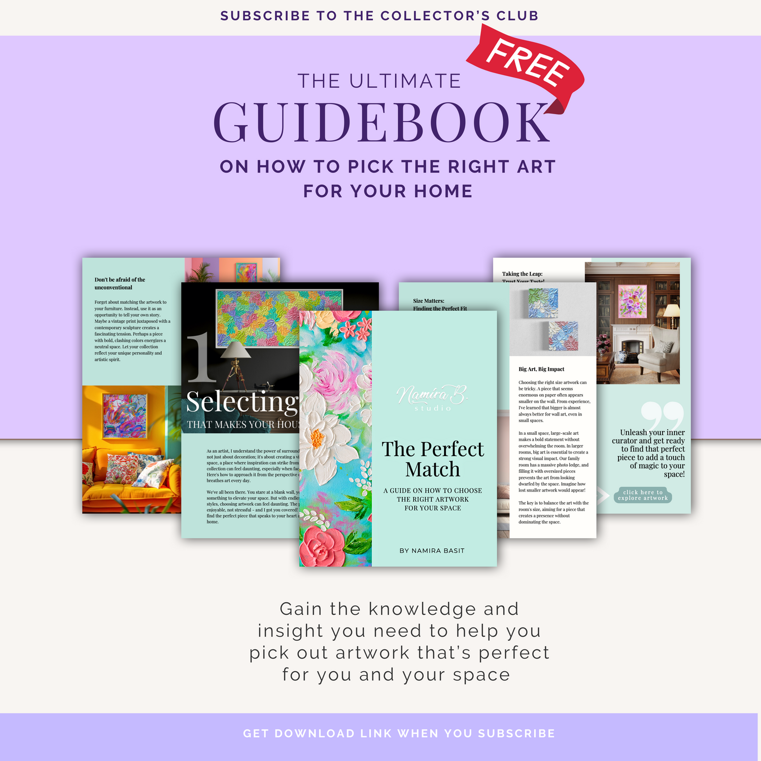 I got you! 👏 I created an ebook jam-packed with tips and insights on how to pick art that complements your decor, enhances the ambiance, and reflects your unique personality and taste!